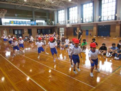 6年生の子どもたちは、1年生の名前を確認して跳んだ回数を報告したり、跳び方のコツを伝えたりするなど、優しく接していました。