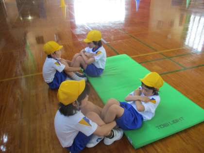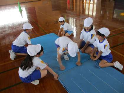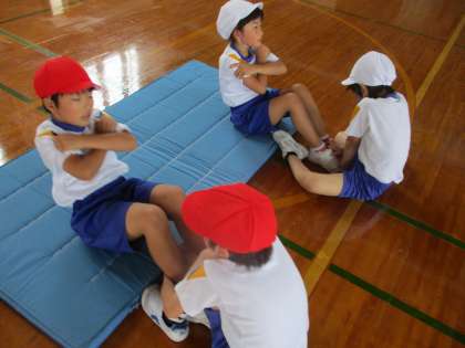 体育では、体力テストに取り組んでいます。子どもたちは、昨年の記録を更新できるよう、一生懸命測定に励んでいます。