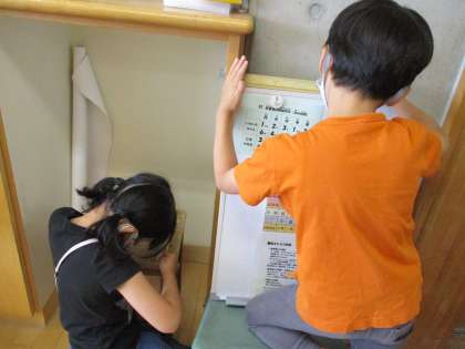 はかりたい部分の長さを見当づけて、竹ものさしを使って実際にはかる活動をしました。測定した結果と予想を比較して、「予想と近い。惜しかった。」「こんなに長かったんだ。」など、口々に話しながら、身の回りのものの長さを確かめていました。