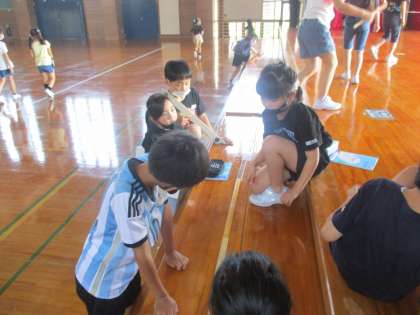 3年生の算数の学習で「長さと距離」の学習をしました。学校の中をの物を物差しや巻き尺を持って測りに行きました。測った後は教室に戻り、測ってきたものを友達や先生に話していました。