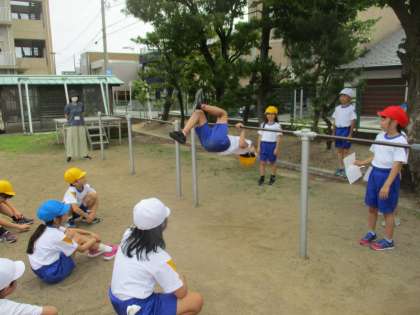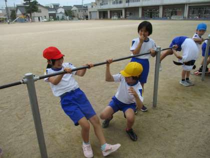 体育係が「鉄棒大会(講習会)」を開きました。目当てはみんなが新しい技をできるようになることです。達成を目指してそれぞれが一生懸命取り組んでいました。