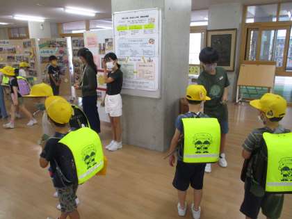 運営委員会では、目をつないで、大きな声であいさつができた子どもにカードを渡す「あいさつ運動パート1」に取り組んでいます。