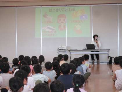 不審者等の人的事故を未然に防ぐための教室に参加しました。相手との距離をしっかりとること、死角になる場所や公園のトイレ等には1人で行かないこと、防犯ブザーや笛を携帯すること、家族が不在でも呼び鈴を鳴らして大きな声で「ただいま!」と言うなど、その他にも様々に気を付けることがあることを学びました。