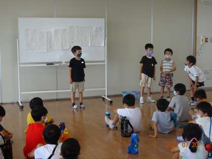 1学期の終わりに学年集会を行いました。『みんな なかよく けんかをしない しゅうかいにしよう』というめあてをもって楽しい一時を過ごしました。