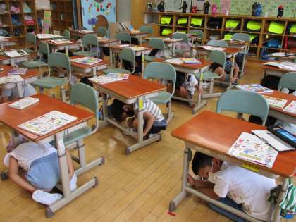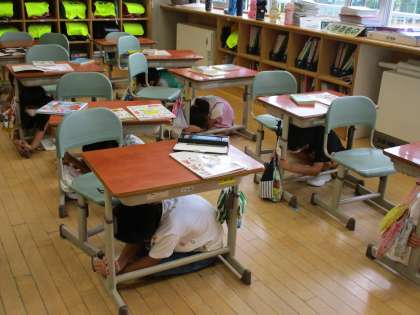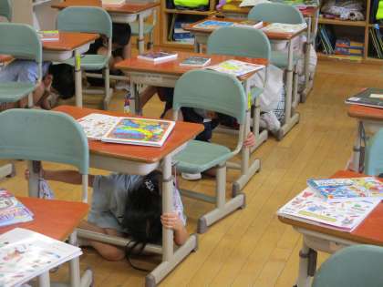 地震対策の避難訓練を行いました。今年はコロナウイルス蔓延防止期間中ということもあり、密を避けるため避難場所への移動はしませんでしたが、子どもたちは緊張感をもって真剣に身を守る訓練を行いました。