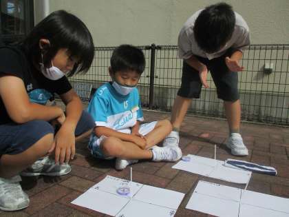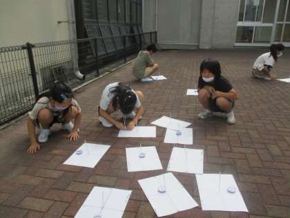 理科の学習でかげと太陽について勉強を進めています。時間によってかげはどのように動いていくかを自分で実験器具を作り観察をしました。