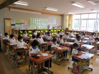 道徳科の学習に、自分の祖父母のどんなところがすてきなのかを話し合いました。祖父母のことを思い浮かべながら「お花や野菜のことをたくさん知っているよ。」「一緒に遊んでくれてとってもとっても優しいよ。」「美味しいご飯を作ってくれるよ。」「会いたくなってきた。」「こうしたら喜んでくれるだろうなあ。」という祖父母への思いや感謝の気持ちを話していました。もうすぐ『敬老の日』です。