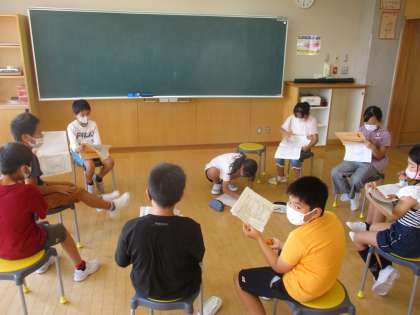 学習発表会の劇の役割が決定しました。今日は、役割に分かれてリーダーを決めたり、台詞の練習をしたりしました。自分たちで動きを付けてやってみようと考えたり、こんな風に言ってみようと伝え合ったりするなど、工夫して練習に取り組んでいます。