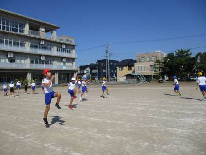 体育科の学習では、校内で実施されるチャレンジ陸上競技会に向けて走・跳・投の運動に取り組んでいます。子どもたちは、自分の記録を伸ばすためにがんばっています。