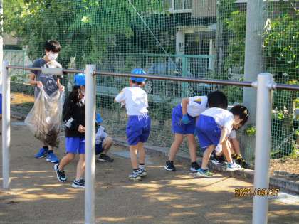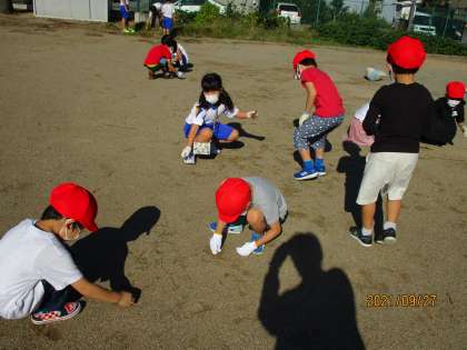 今朝は、1・2年生の色団対抗草むしり大会がありました。割り振られた場所で、「あったあ。」「すごく長い根っこだったよ。」などと言いながら、がんばって草むしりをしました。明日、明後日は中・高学年が参加します。