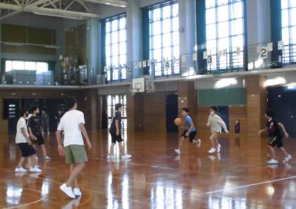 いきいきタイムの体育館使用は、曜日ごとに低・中・高学年に割り当てられています。体育館が使用できる日には、フロアの半面ごとに鬼ごっこやドッジボール、バスケットボールを楽しむ姿が見られます。ギャラリーでは卓球をすることもできます。