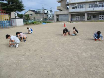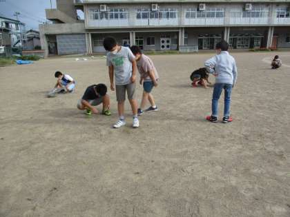 環境美化委員会の企画「草むしり大会」がありました。5、6年生で協力してグラウンドの草むしりをしました。夏に伸びていた草たちを取り除き、すっきりしたグラウンドになりました。