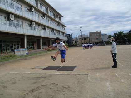 「練習の成果を発揮し、全力を出しきろう」を目当てに、50m走、走り幅跳び、ソフトボール投げの3種目に一生懸命に取り組みました。