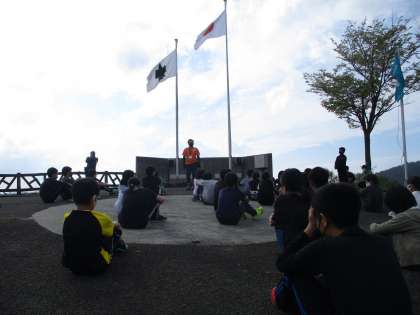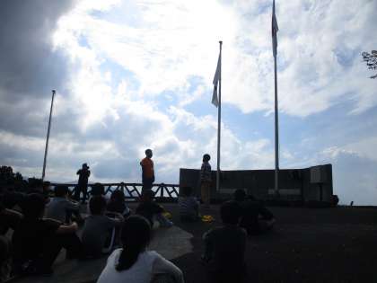 退所式の後、昨日登った来拝山をバックに記念写真を撮りました。