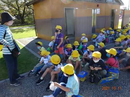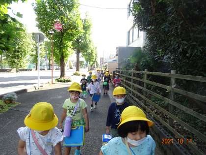 秋晴れの中、今日は神通川緑地公園へ生き物を探しに行ってきました。交差点では、しっかりと「右・左・右」を行い、手を上げて安全に渡りました。公園につくと、子どもたちははりきって秋の虫を探し始めていました。
