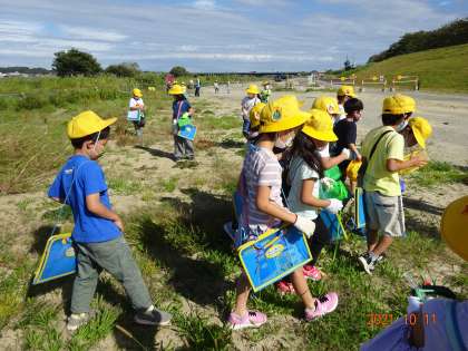 残念ながら、あまり秋の虫は多くいませんでしたが、子どもたちはバッタやコオロギの動きをよく観察して、採集しようと必死でした。