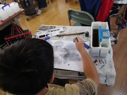 クロームブックを使って、墨の濃淡やぼかし方などを調べ、いろいろな描き方を試していました。どんな作品が完成するのか楽しみです。
