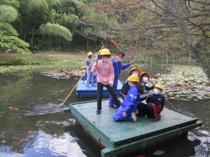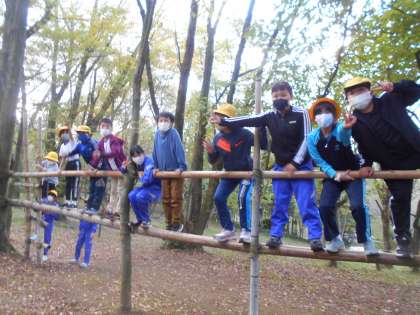 1日目の午後は、竹ジャングル、いかだ遊び、ストラックアウト、フライングゴルフを行いました。「まだやりたいな」「宿泊楽し過ぎる」とどの活動も思い切り楽しんだ様子でした。
