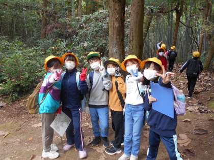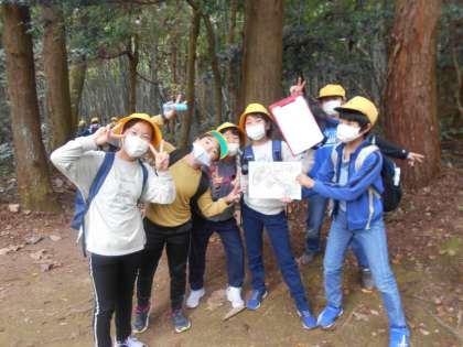 森の木オリエンテーリングでは、地図をたよりにポイントを巡り、班のみんなと相談しながら木の名前を解答用紙に書きました。