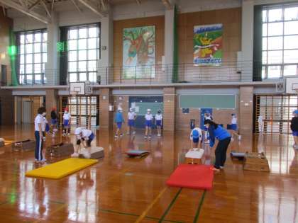 外部講師の先生を招いて、跳び箱の学習をしました。開脚跳びや台上前転など、跳び方のポイントを教えていただきました。