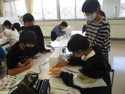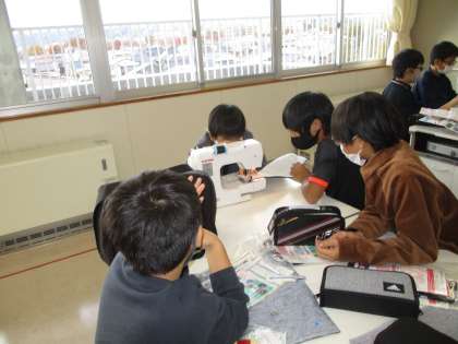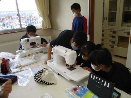 家庭科の学習では、ミシンでトートバッグをつくっています。