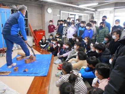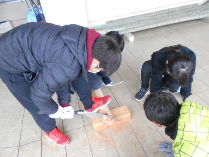 友達と協力して丸太を切りました。焼き印をしたり、絵を描いたりして自分だけのコースターに仕上げました。