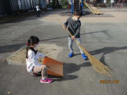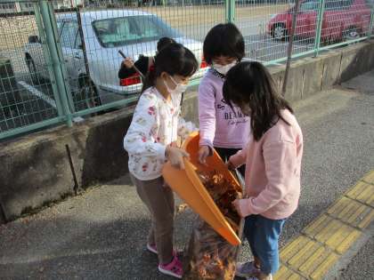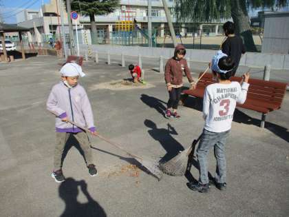 落ち葉が道路や公園に広がっていることが気になった3年生まちなか調査隊。そのままにしておくことができず、朝の時間や休み時間を利用してきれいにすることにしました。