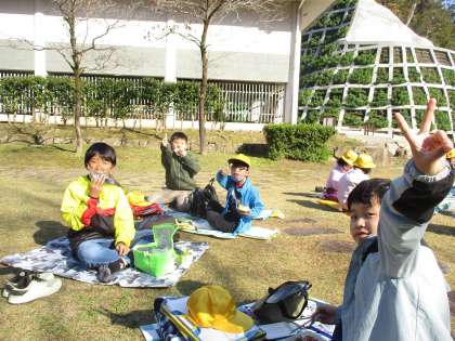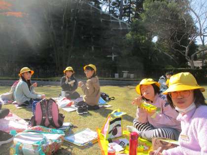 お昼ご飯は、グループで仲良くお弁当を食べました。