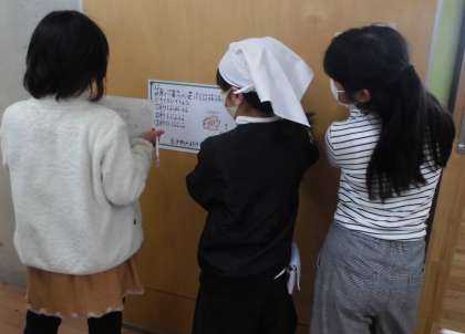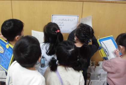 給食委員会による給食クイズラリーと、栽培委員会による植物クイズラリーがありました。校舎内に貼ってあるクイズを探し、解答するものです。クイズラリーを通して、楽しく知識を増やしている子どもたちです。