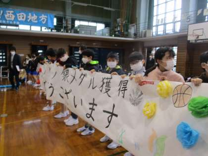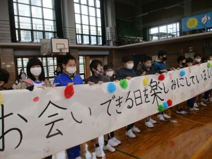 宮島選手との交流会では、5年生が体育館での花道をつくりました。「パラリンピックの選手ってかっこいい。」「実際に目の前に来てくださって感激した。」など、憧れの選手に出会えて笑顔が広がりました。