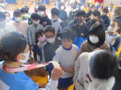 最後には、宮島選手から銀メダルを見せていただきました。「分厚いね」「重そう」「きれい」などと、銀メダルの重みを感じながら、宮島選手との交流を終えました。その後、全員で宮島選手に感想と感謝の手紙を書きました。子どもたちにとって、記憶に残る一日になりました。