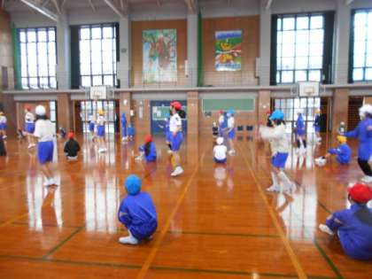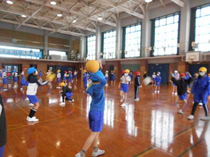 3学期初めての体育は、縄跳びとボール運動で体を温めました。子どもたちは、3学期に縄跳び大会があることを知り、やる気を高めていました。