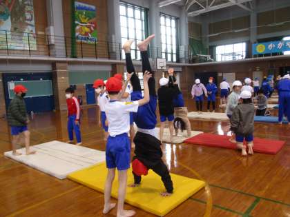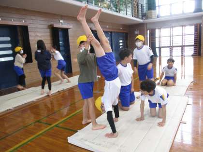 3学期の体育の時間は、なわとびとマット運動からスタートしました。なわとびは、前回しや二重跳び、そして難しい技にも挑戦しています。マット運動では、倒立の練習もしています。どんな技ができるようになるのか楽しみです。