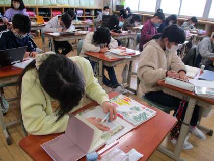 国語科では、季節、食べ物、気持ち等のテーマを決めて詩集作りをしています。いろいろな詩を読み味わいながら、どんな詩をのせようかと悩みました。自分だけの特別な詩集が完成するといいですね。