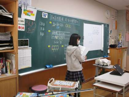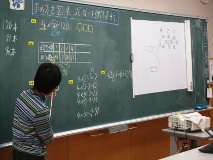 算数の時間に「変わり方調べ」を学習しました。図、表、式を使って、自分の考えを説明しました。友達の発表を聞いて「なるほど」「そうなんだね」と、うなずきながら聞いていました。