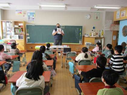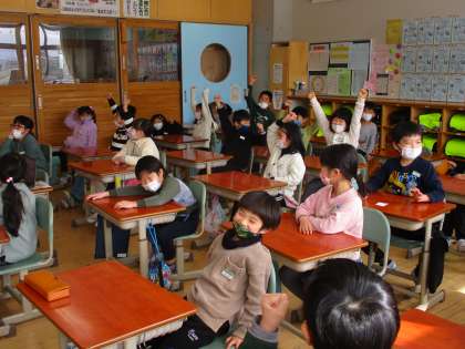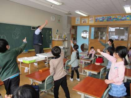 初めての外国語活動に、朝から不安そうにしていた子どもたち。いざ外国語活動の時間が始まると、ケビン先生の楽しい英語の世界に引き込まれ、ゲームに参加していました。また一つ、3年生になる楽しみが増えたようです。