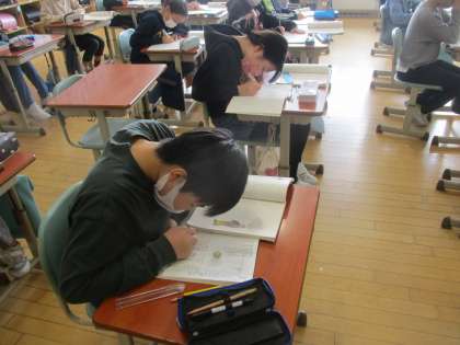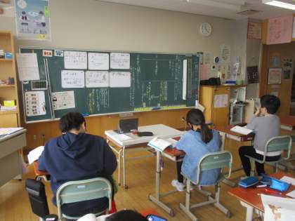 国語では「大造じいさんとガン」の学習をしています。物語の山場について考えたり、情景描写の効果について話し合ったりして読みを深めています。