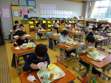 今日の給食は6年生さんお祝い献立でした。紅白白玉汁や赤飯などのメニューが出ました。子どもたちはお祝いと感謝の気持ちで、残さずいただきました。デザートの豆乳プリンタルトも美味しかったです。