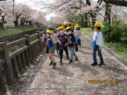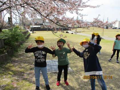 桜の花びらが舞い散る桜色の磯部堤を歩くと、公園に着きました。