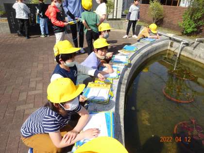 図画工作科「おはなみ スケッチ」の学習では、校庭のいろいろな場所にある春を見付けて、スケッチをしました。