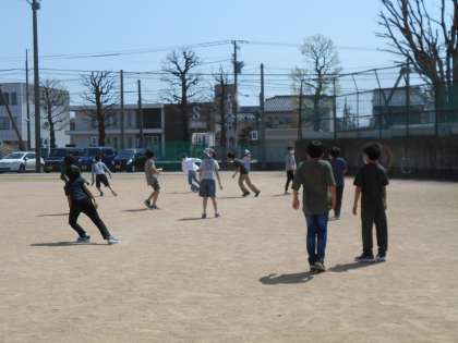 子供たちは休み時間に元気にサッカーや縄跳びをしています。また体育では、短距離を軽く走ったり長縄をしたりと、体を慣らす運動をしています。
