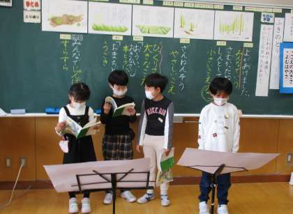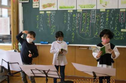 友達の音読を聞いて、よかったところや練習のときと比べて気付いたことを伝え合いました。