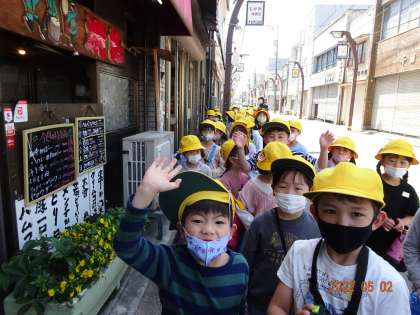 今日は、千石町商店街へ探検にいきました。商店街はどんなところなのか、どんなお店があるのか町のすてきを探しました。「とてもいい匂いがしたよ。うどん屋さんがありました。」「このお店のお肉はおいしいよ。」たくさんのすてきを発見しました。