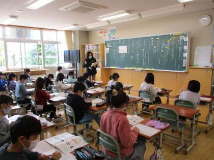 3年生の書写は船崎先生が担当です。第1回目の学習は、硬筆でした。書写の学習で大切なことを確かめながら、丁寧に文字を書きました。