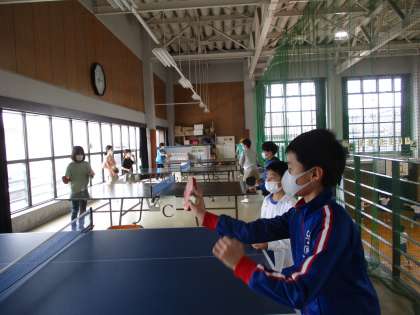 今年度のクラブ活動がスタートしました。卓球クラブでは、「いろいろな学年の友達と仲良くなり、卓球を楽しもう」という目当てのもと、活動を開始。今日は、早速6年生が4年生に教えたり、ラリーを楽しんだりしました。