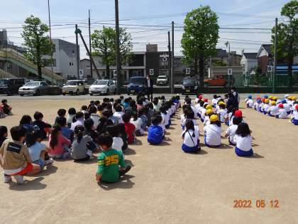 今年度初めて、全学年での避難訓練を行いました。火事を想定した訓練で、子供たちは非常階段を使って避難しました。「お・は・し・も」を守って、安全に避難しました。