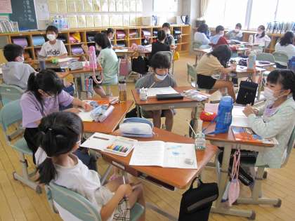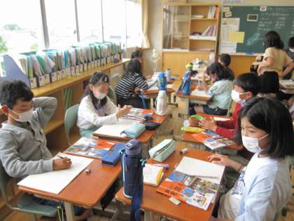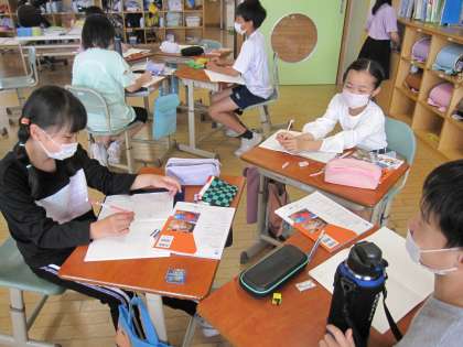 「きれいな水の条件は?」という問いにグループでそれぞれ意見を出し合っていました。
