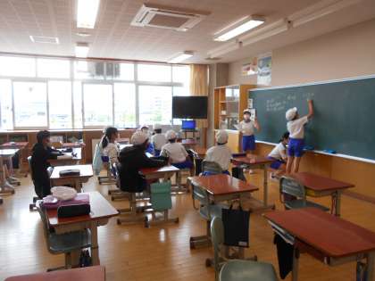 5、6年生合同の競技練習が始まっていますが、子供たちは綱引きの並び方を作戦会議で話し合ったり、応援練習を5年生独自で行ったりと、5年生も意欲的に取り組んでいます。友達と頭を捻って考えたり、声や動きを揃えて練習したりする経験を通して、自主性や協調性を伸ばしてほしいと思います。