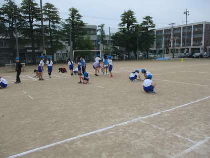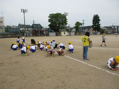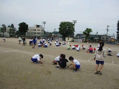 運動会に向けて、安全に競技ができるように草むしりを行いました。子供たちは、色団で分けられた場所をみんなで協力してきれいにしていました。