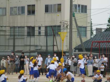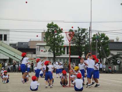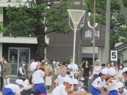 玉入れでは、立ったり座ったりと動きの多い競技でしたが、子供たちはしっかりと動作を覚えていました。玉入れも、かごをしっかりと狙って入れることができました。